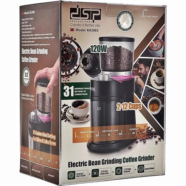 ظرفیت مخزن دانه قهوه : ۲۵۰ گرم
